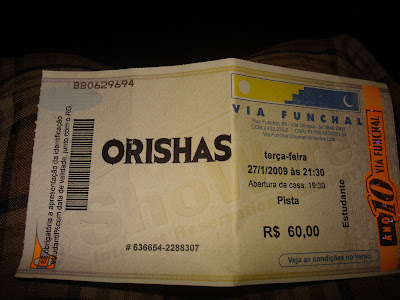 No final do show estávamos podres, minhas pernas e pés doíam apesar da minha inteligente precaução em ir de tênis, mas com uma sensação muito foda. Tinha tudo quanto é tipo de gente. Os moderninhos, os cools, os loucos, os mauricinhos, os que a gente nunca imaginaria que pudesse gostar de Orishas. Tava cheio, mas não tava abarrotado, ou seja, tava ótimo! Os caras interagem muito com a galera e botaram uma porrada de gente no palco pra cantar e dançar.